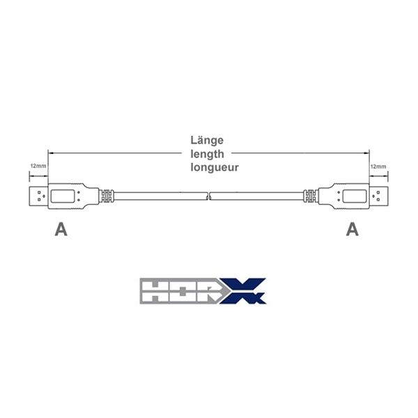 Special USB 2.0 cable with 2x plug USB A male LOCKING TYPE 1m