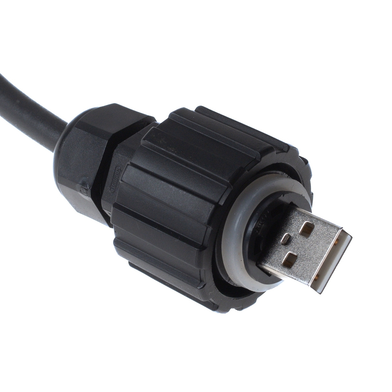 USB cable for drag chains (cable carriers) and industrial applications, 10m, for USB 1.1 and USB 2.0, 2x USB plug CONEC A IP67 male, Made in Germany