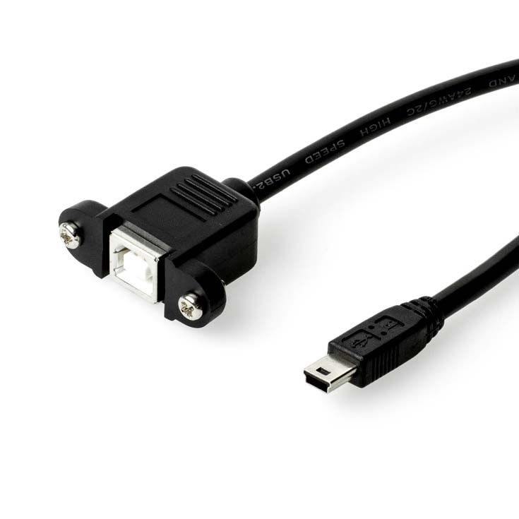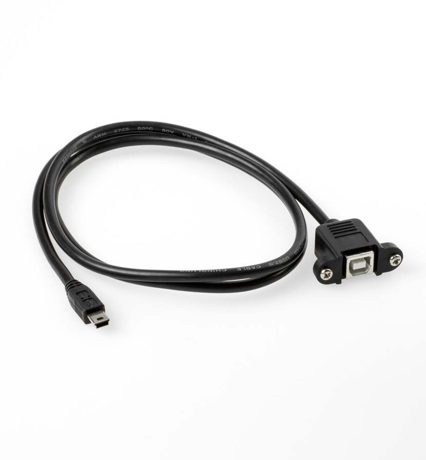 USB 2.0 Panel-Mount cable, USB B female with 2 screws to USB Mini B male, 1m