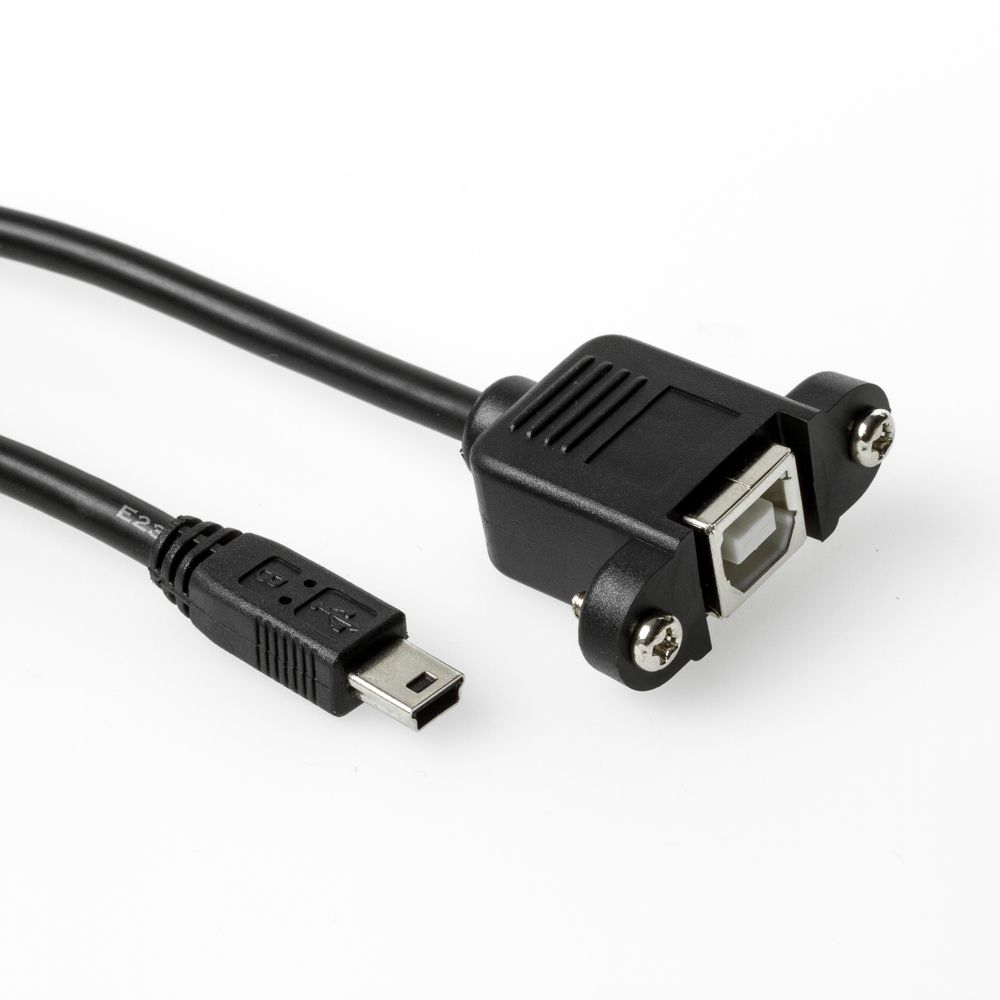 USB 2.0 Panel-Mount cable, USB B female with 2 screws to USB Mini B male, 50cm