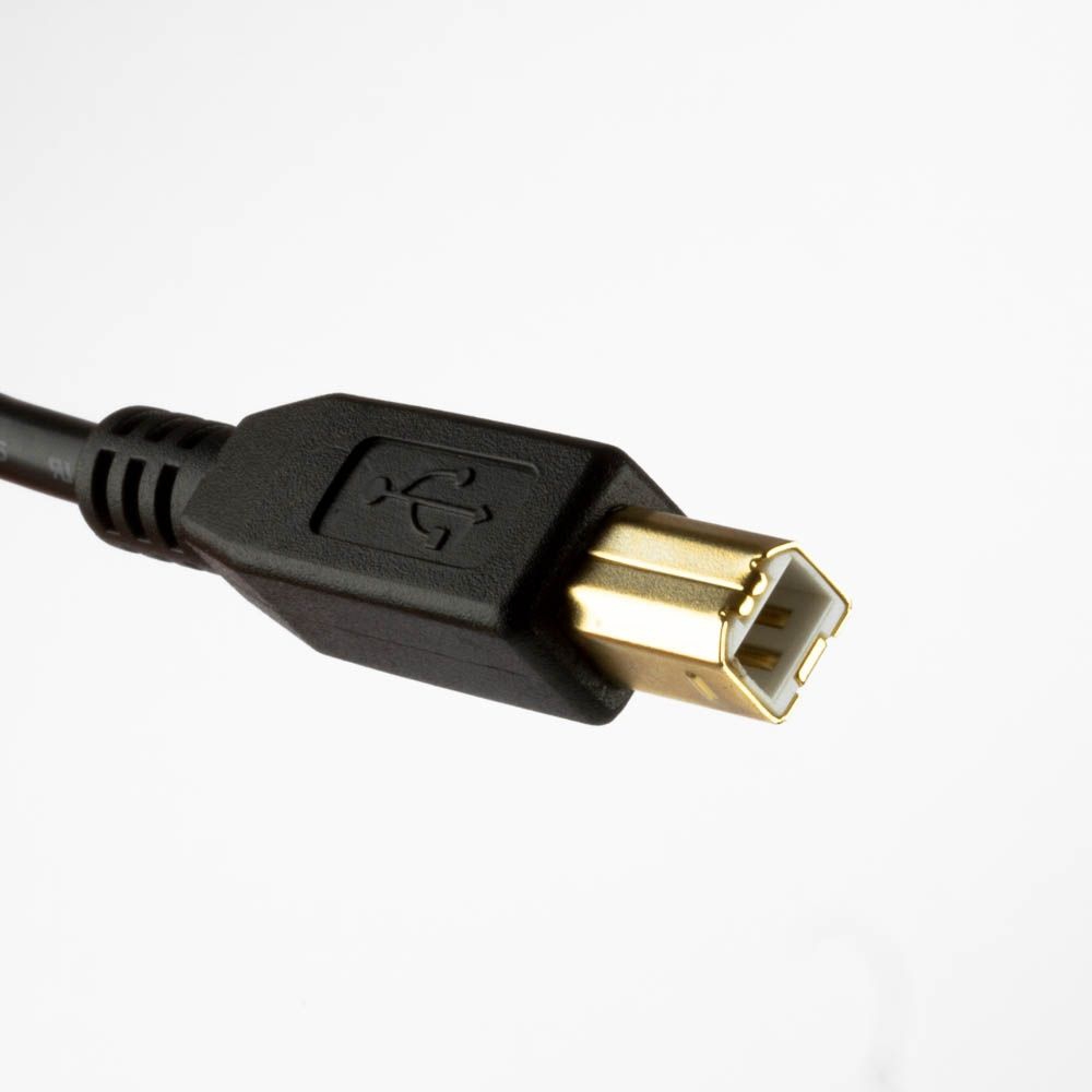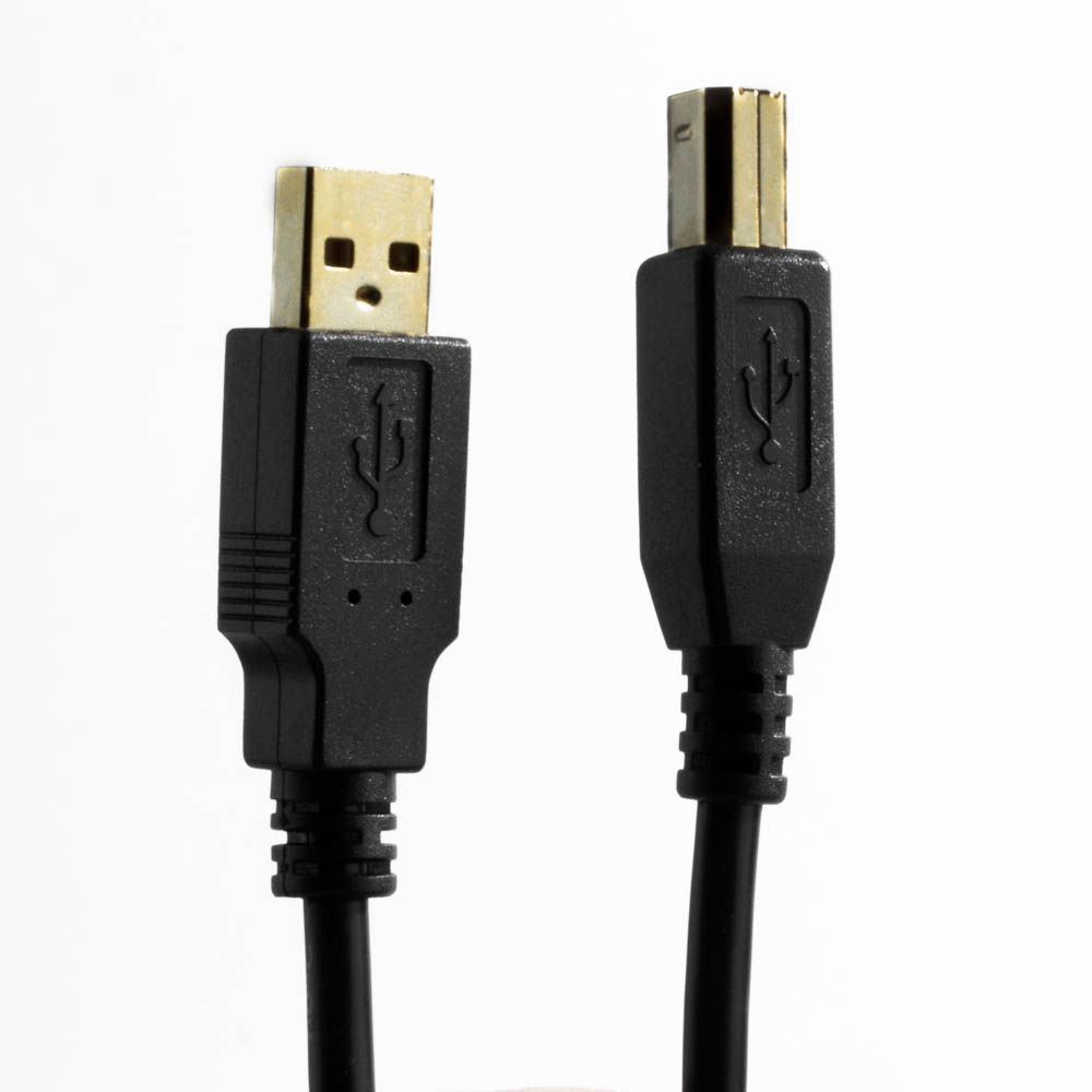 USB cable, 5m, gold plated connectors, for USB 2.0 and USB 1.1, high quality (28AWG1P / 24AWG2C), USB plug A to USB plug B (USB standard), colour: black