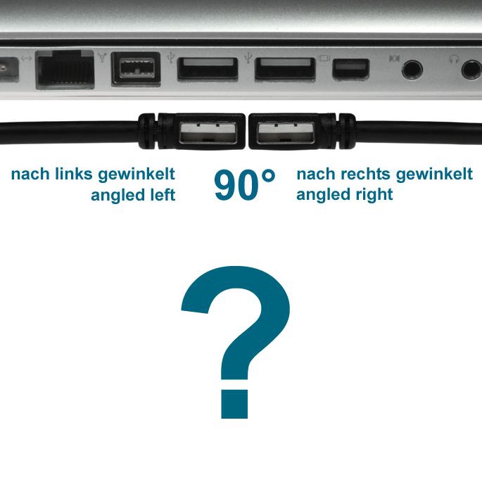 USB 2.0 cable AB, plug A angled LEFT, plug B angled LEFT, 2m