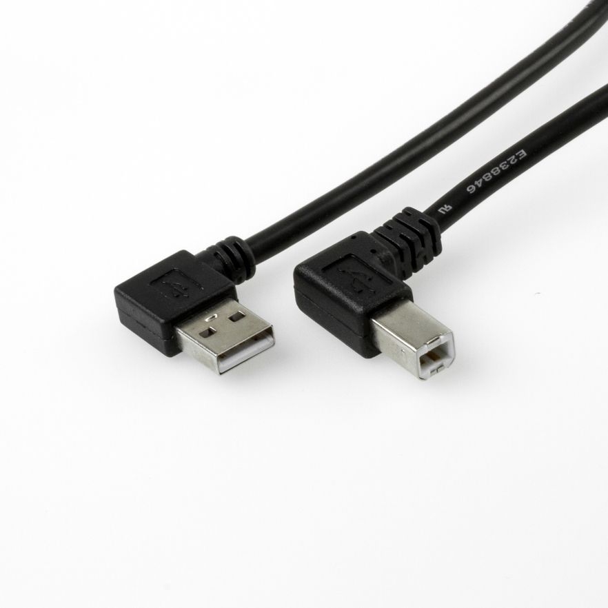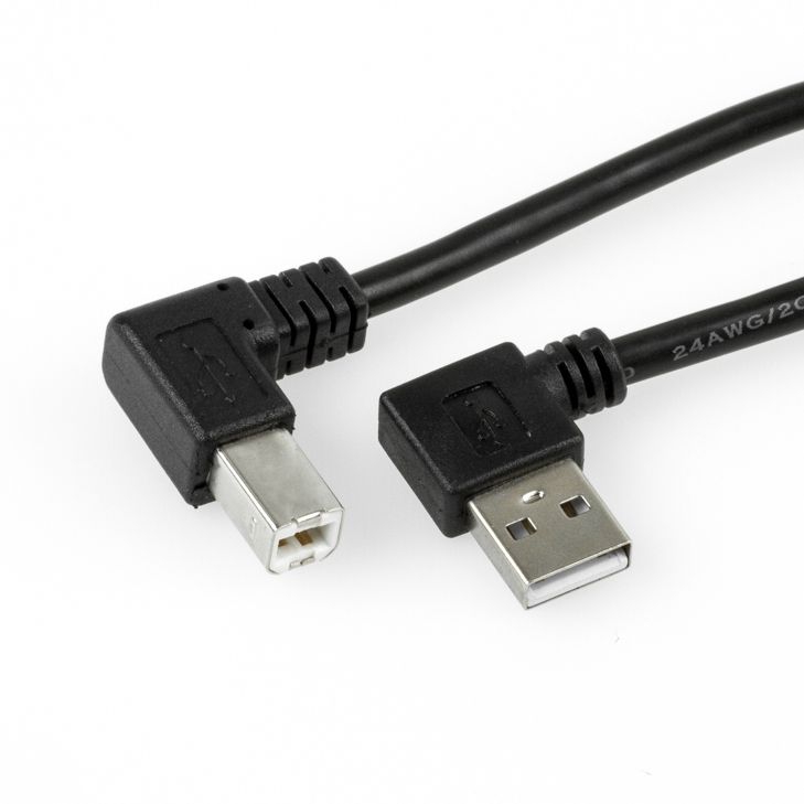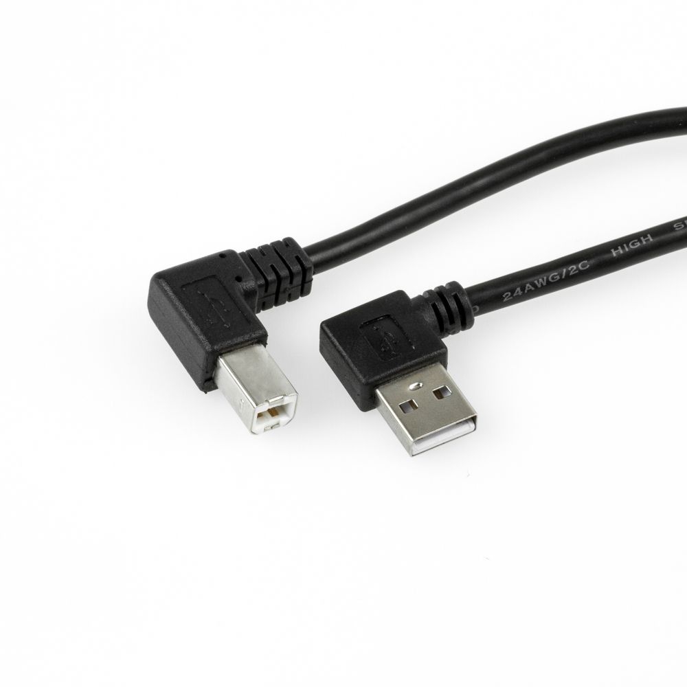 USB 2.0 cable AB, plug A angled LEFT, plug B angled RIGHT, 1m