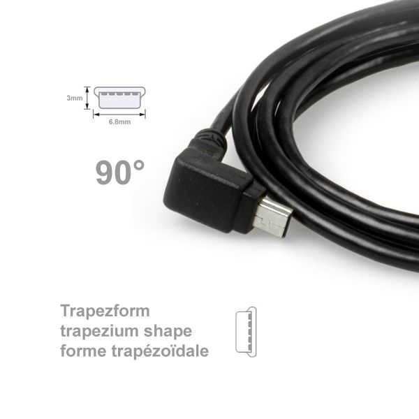- Connection 2: USB 2.0 MINI B plug angled 90° DOWN (male)
