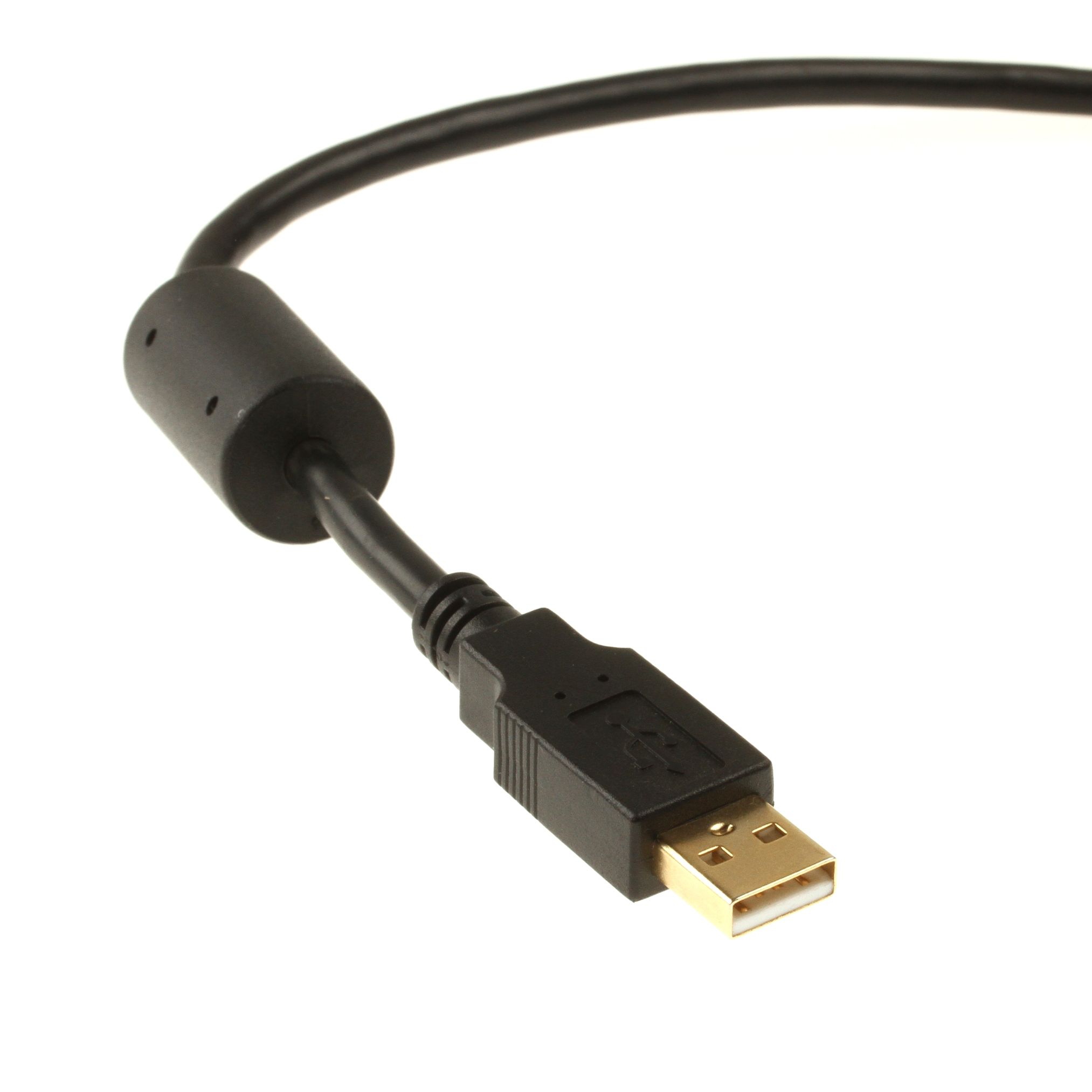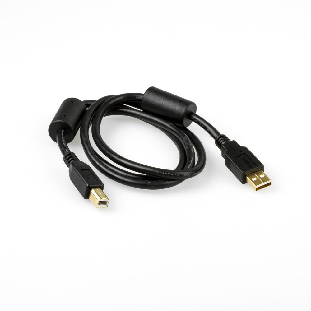USB cable 1m, USB 2.0, very high quallity for INDUSTRIAL APPLICATIONS: 2x ferrite core, 26AWG/1P 20AWG/2C, double shield foil + braid (85% coverage), 30 µm gold plated plugs, USB-A male to USB-B male, black