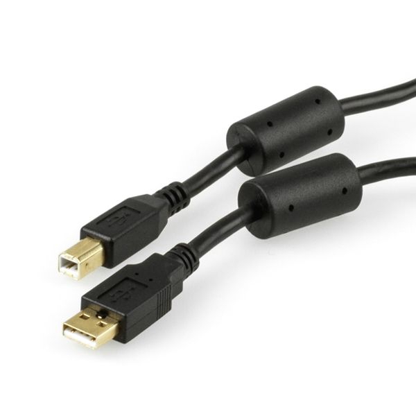 USB cable 7.5m, USB 2.0, very high quallity for INDUSTRIAL APPLICATIONS: 2x ferrite core, 26AWG/1P 20AWG/2C, double shield foil + braid (85% coverage), 30 µm gold plated plugs, USB-A male to USB-B male, black