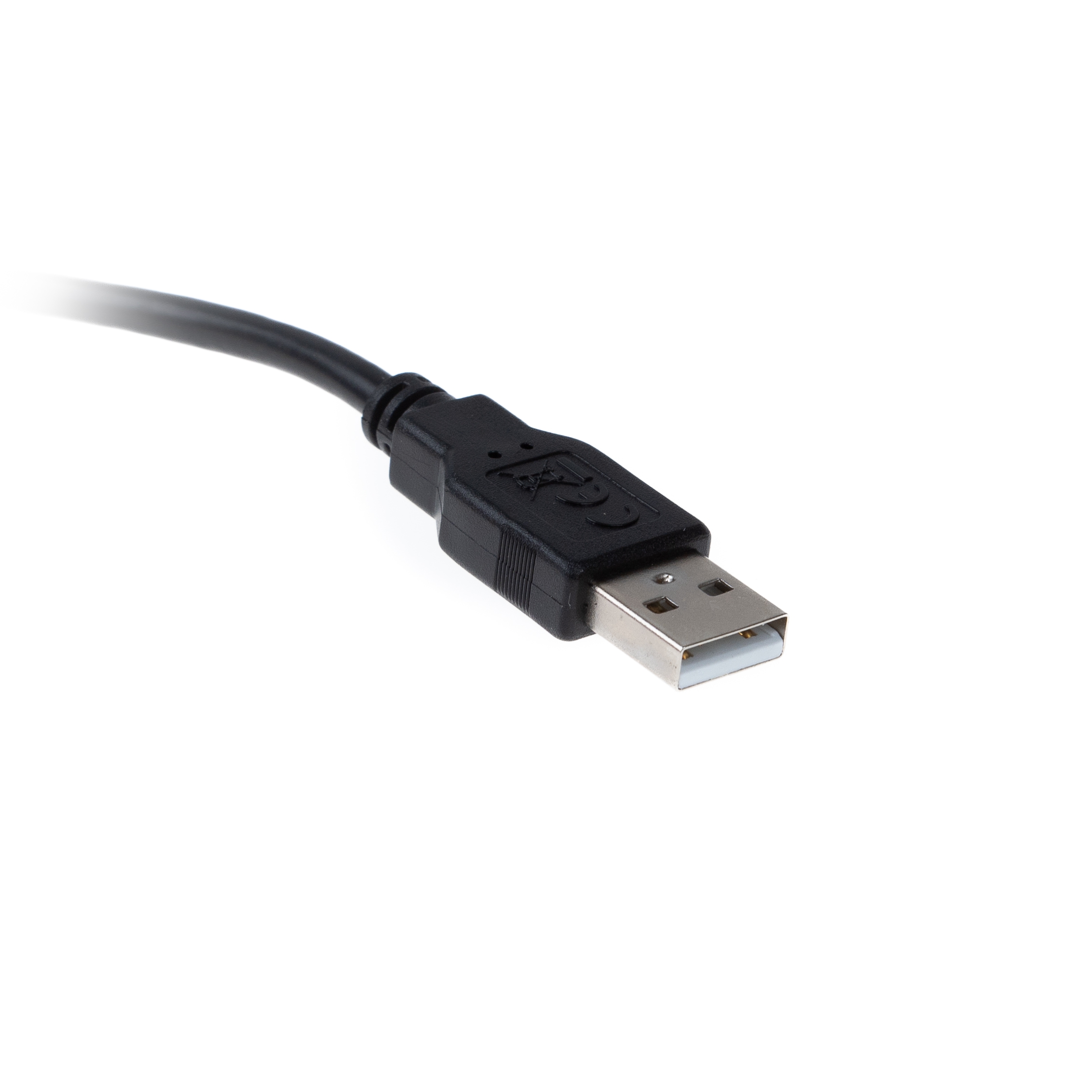 - USB 2.0 cable A-to-B with 90° B angled plug