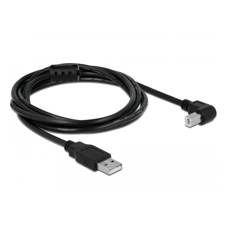 USB 2.0 cable with B plug 90° ANGLED DOWN with ferrite core 2m