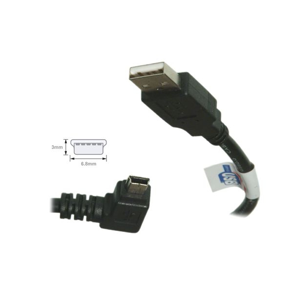 USB 2.0 cable with Mini B plug LEFT ANGLED 1m