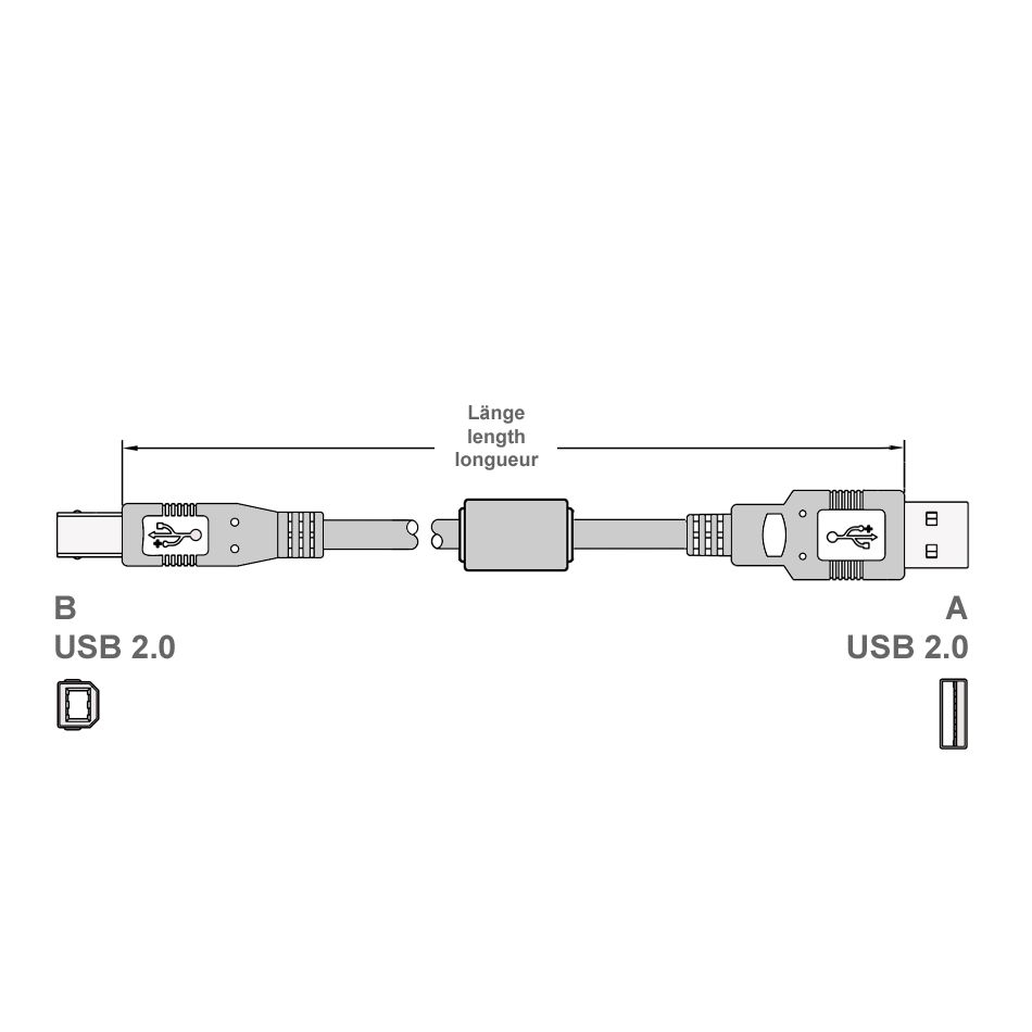 USB 2.0 cable with ferrite core PREMIUM quality 2m