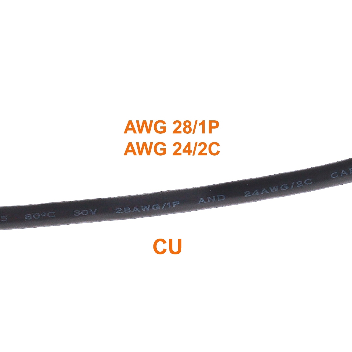- copper core thickness according to USB standard: AWG28 + AWG24