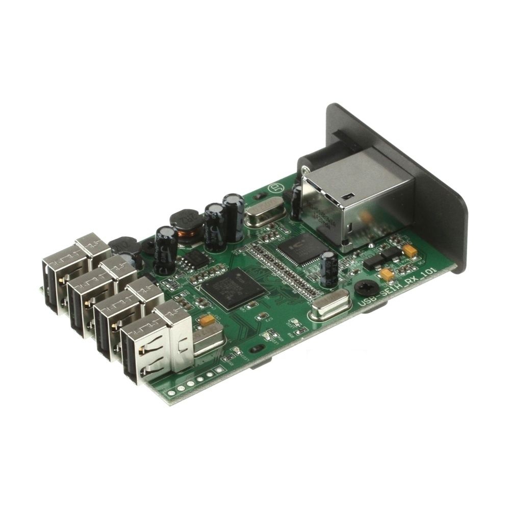 USB 2.0 extender with integrated 4 port USB 2.0 HUB, transmitter + receiver/USB2-HUB unit, connection via Cat.5 or Cat.6 cable (up to 100m / 165ft), max. 480Mbps