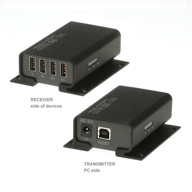 USB 2.0 extender set with 4 port USB HUB max. 100m
