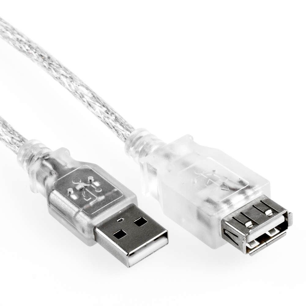 USB extension cable, type A male to type A female, 2m, colour: translucent silver, color: translucent silver
