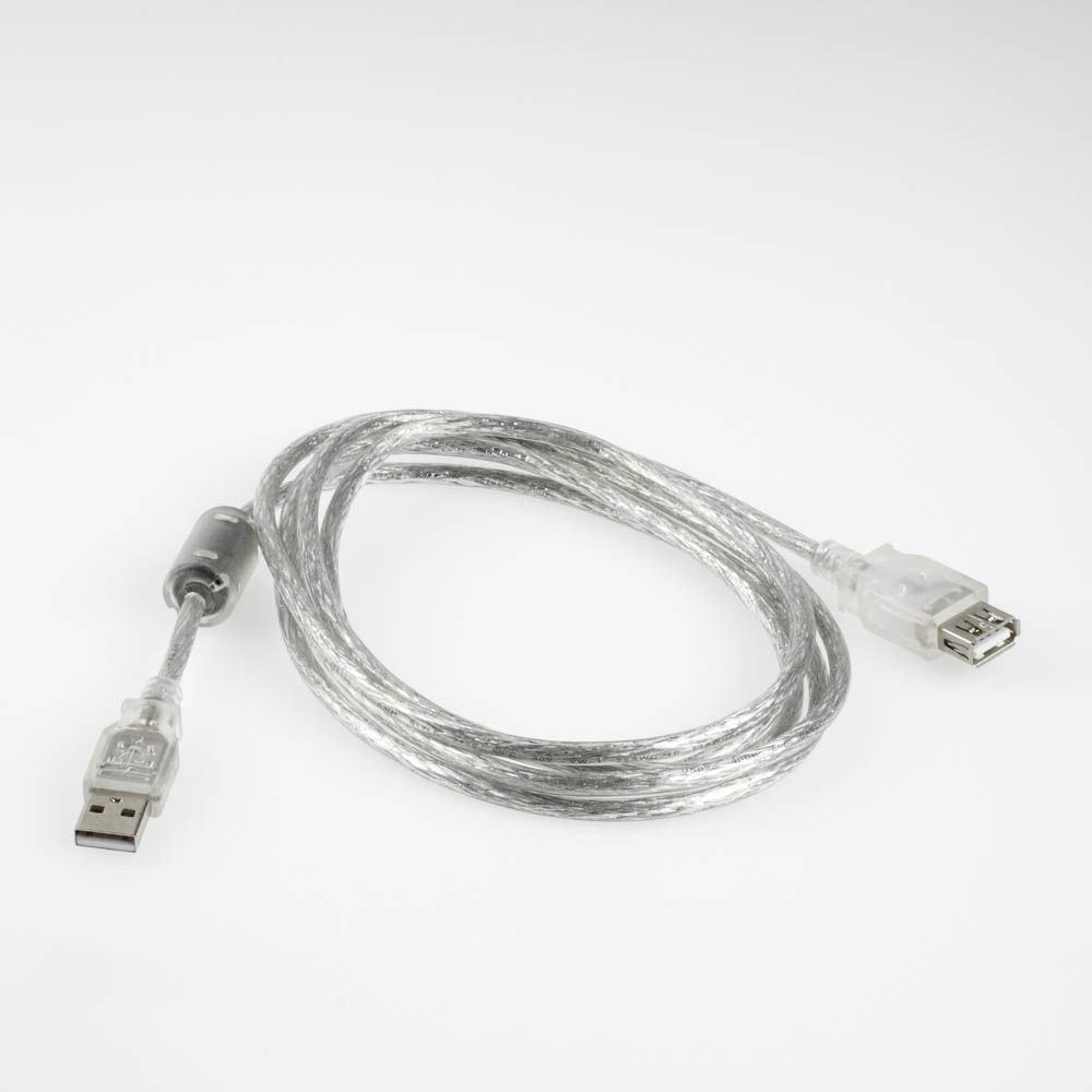 USB 2.0 extension cable, type A male to type A female, with ferrit core, 2m, colour: translucent silver