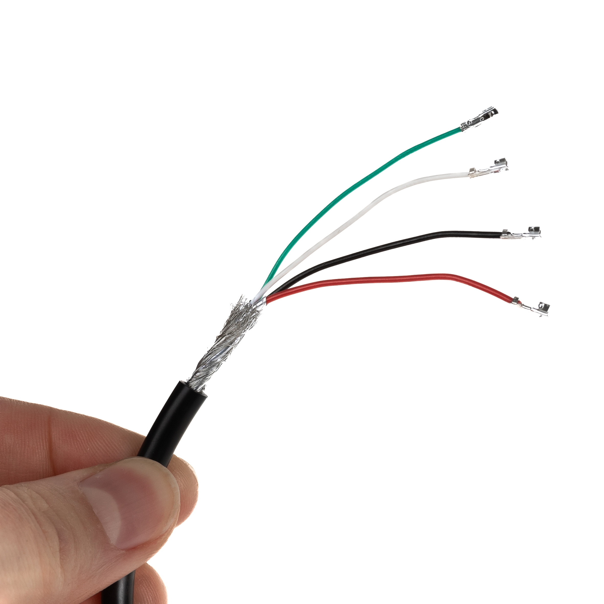 - Length of the protruding shield foil/braided shield: approx. 15mm (fold over and crimp in during final assembly)