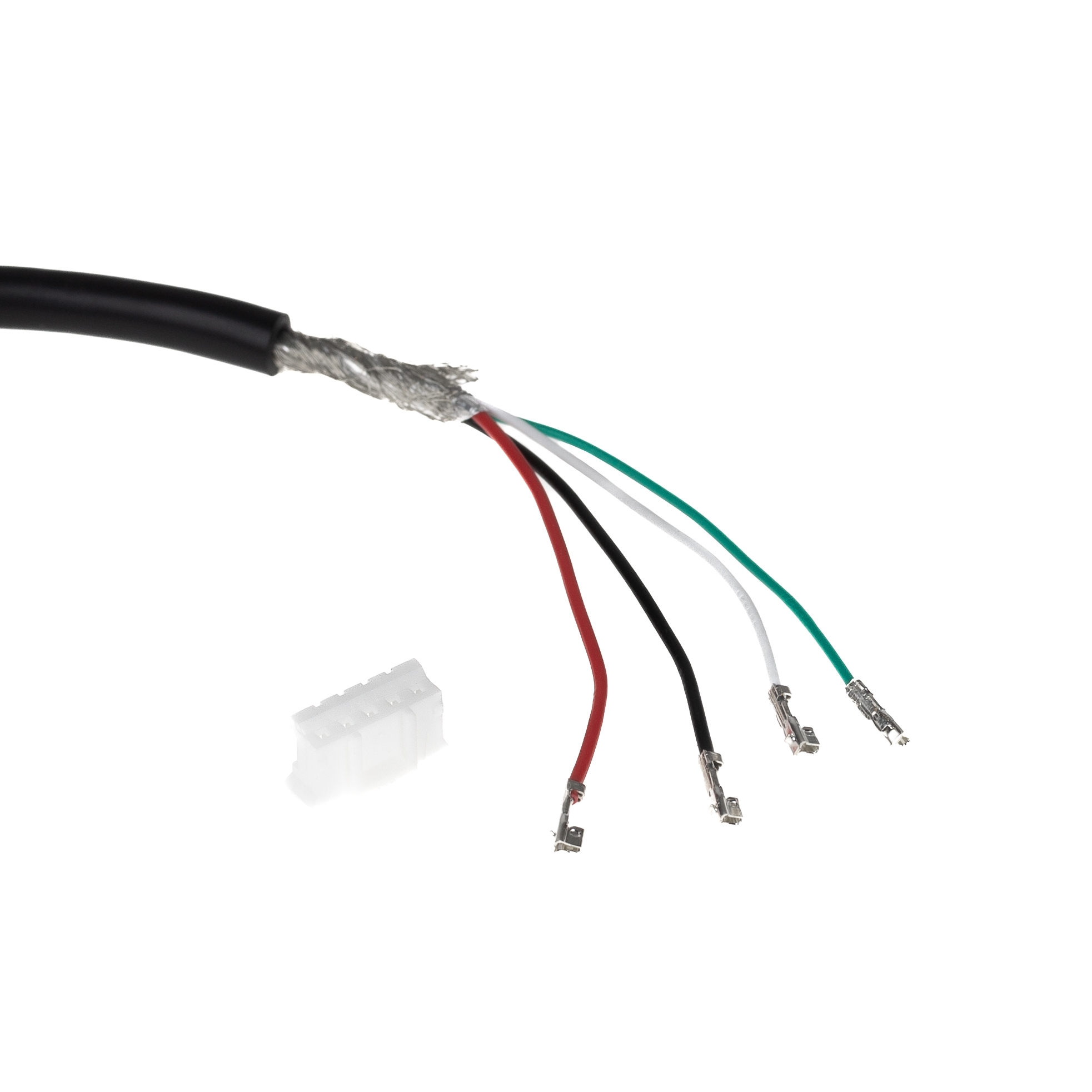 The USB 2.0 special cable offered here has been optimised for a housing feed-through. As the contacts of the JST connector are not yet plugged into the JST housing, the cable can be plugged through a small round hole in a device.