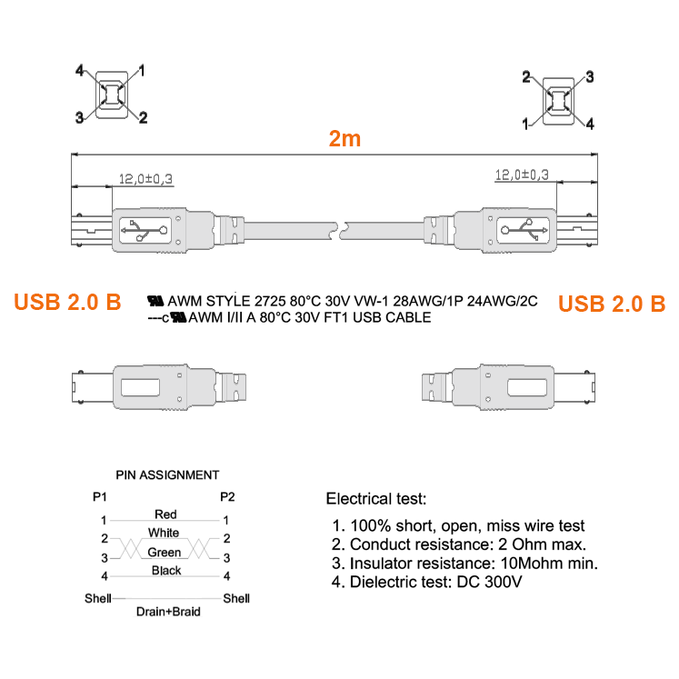 - PLEASE NOTE: 2x USB B connector does not match the USB standard