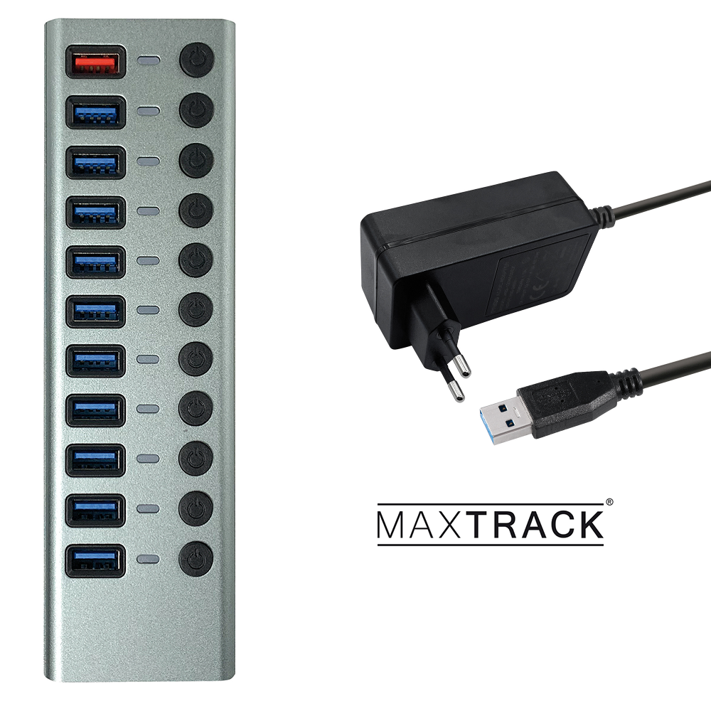 USB 3.0 HUB with 11 ports, metal body, 10x USB port + 1x charging port, each port individually switchable, USB 3.0 cable 1m and power supply 4A included