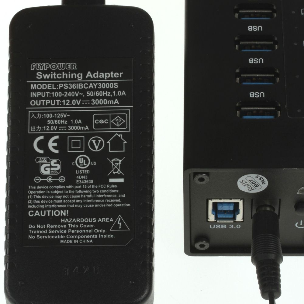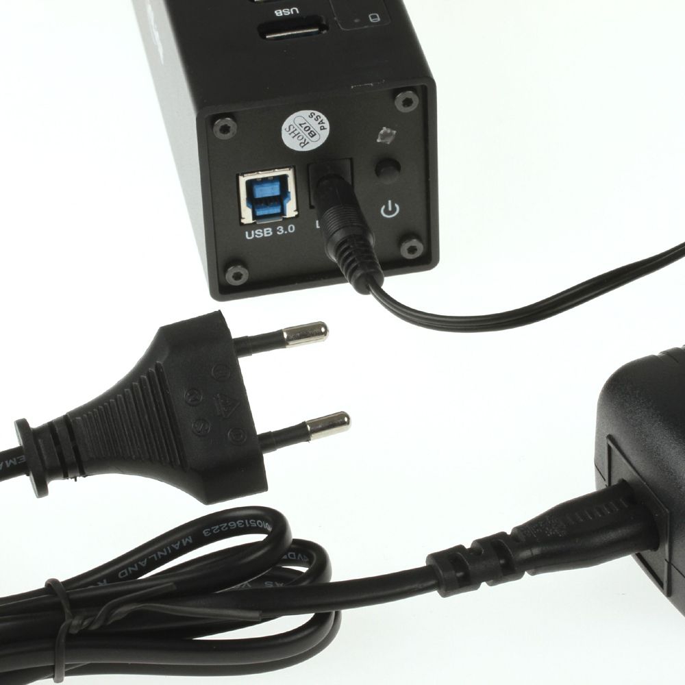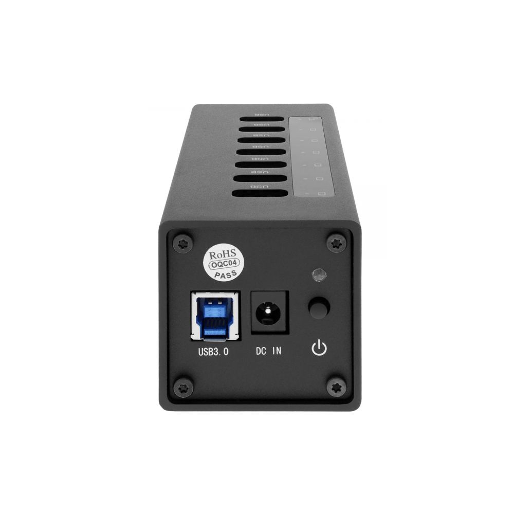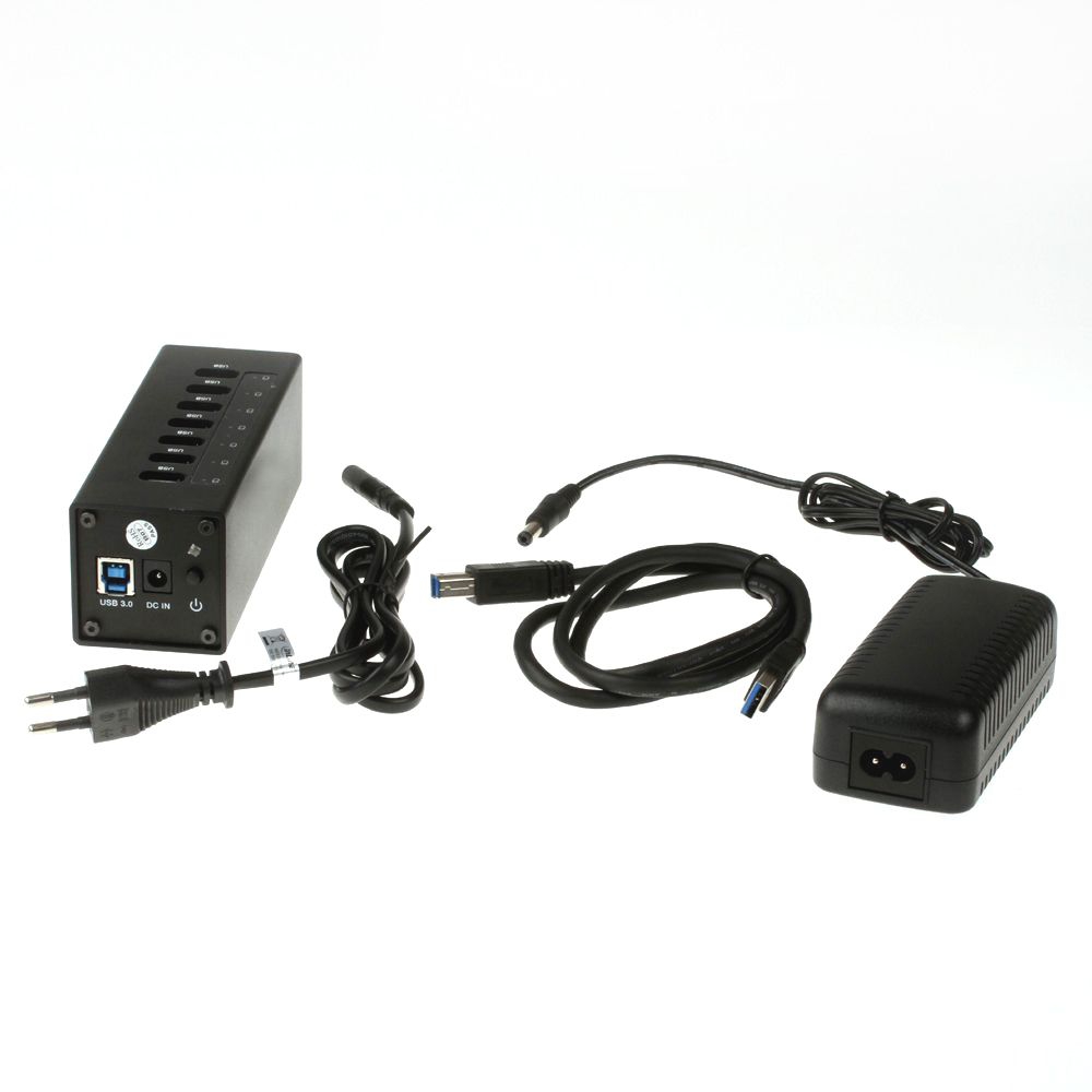 USB 3.0 HUB with 7 ports, metal body, USB 3.0 cable and power supply 3A included, black