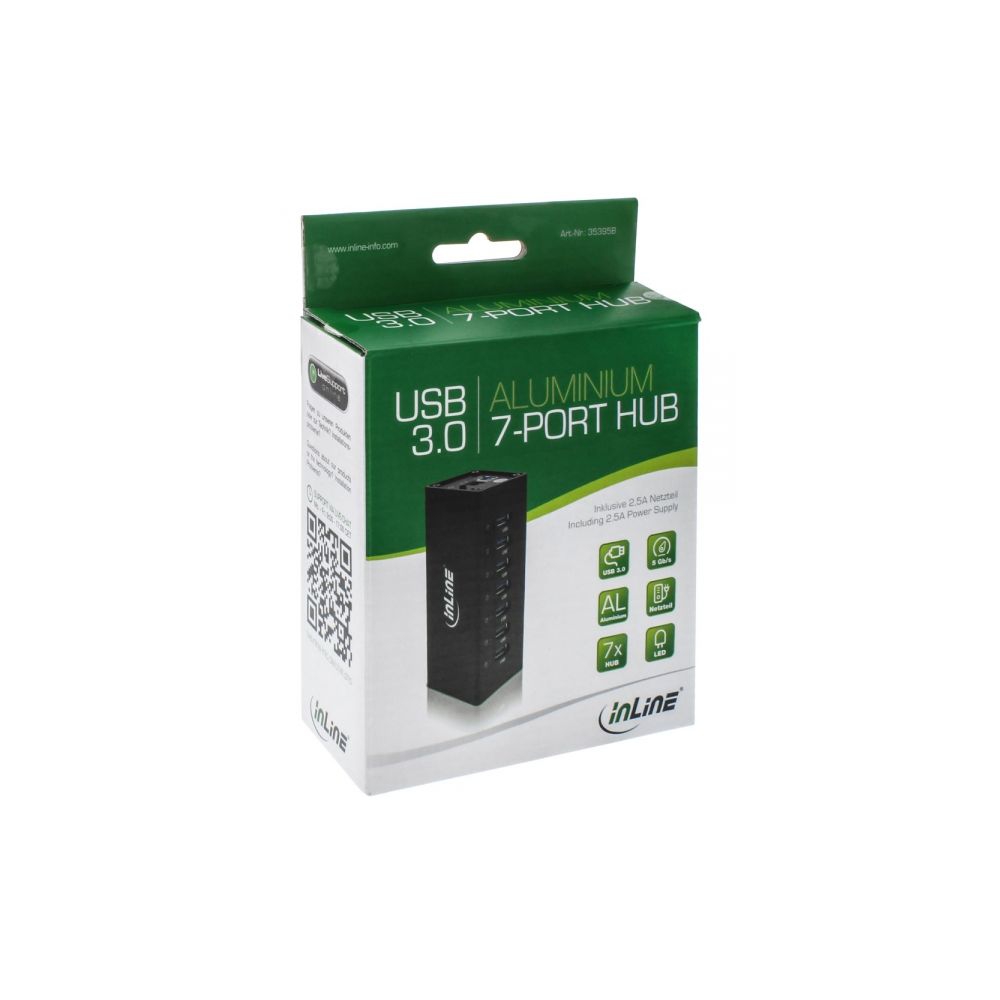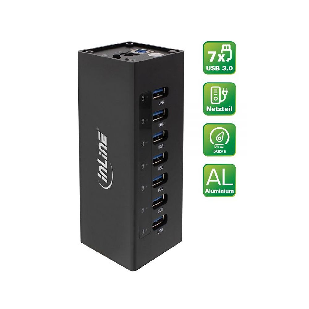 InLine ® USB 3.0 aluminum hub, black, Power Supply Active USB 3.0 aluminum hub with VIA VL817 master chip. Transfer data at up to 5 Gbps. (More than ten times the USB2.0 interface) The AC adapter allows simultaneous work with multiple USB devices. The Hub is backward compatible (USB2.0 and USB1.1) The design aluminum housing combines sophisticated design with high stability.