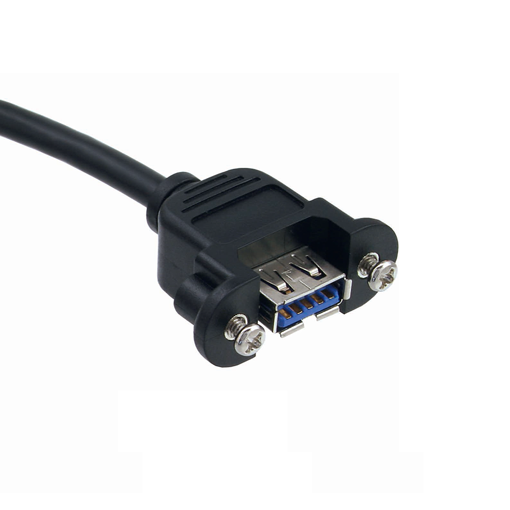 - Short USB 3.0 panel mounting cable with screw-on A socket