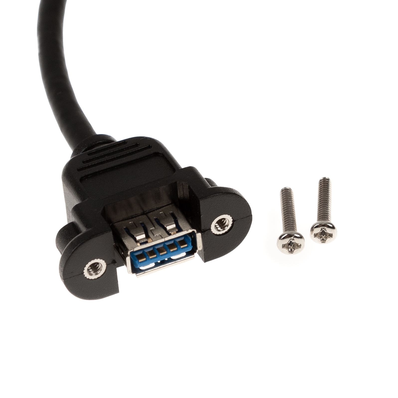 - Short USB 3.0 panel mounting cable with screw-on A socket
