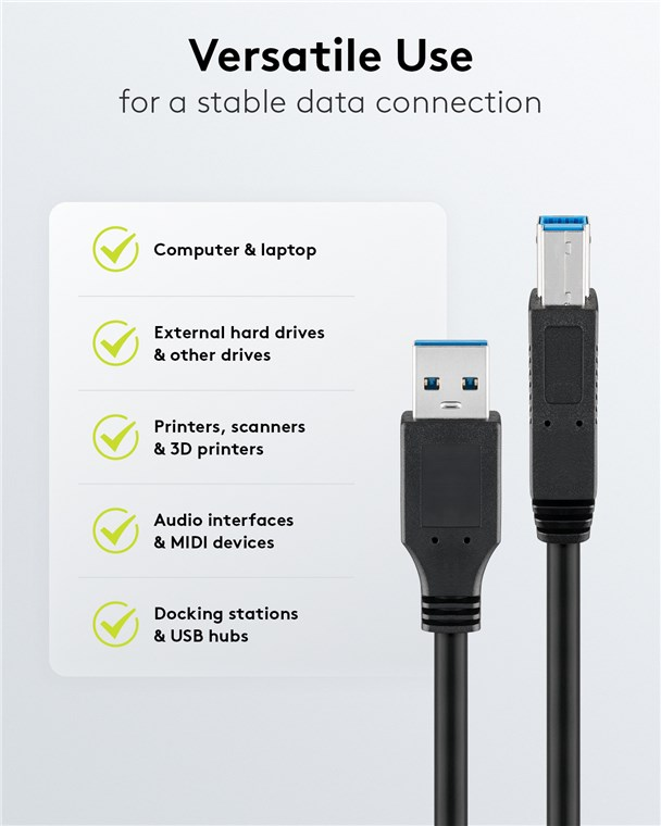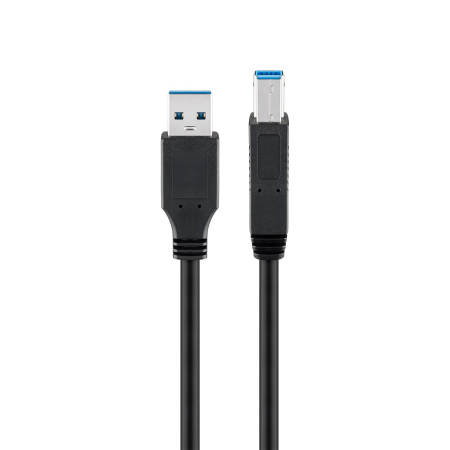 USB 3 cable, 180cm, USB 3.0 compatible (Super Speed Mode), USB3 A plug male to USB3 B plug male, colour: black
