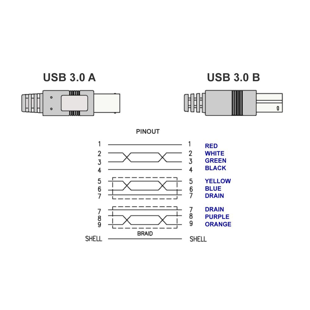 USB 3.0 cable AB Quality PREMIUM+ with thicker wires AWG26/28/22, 5m