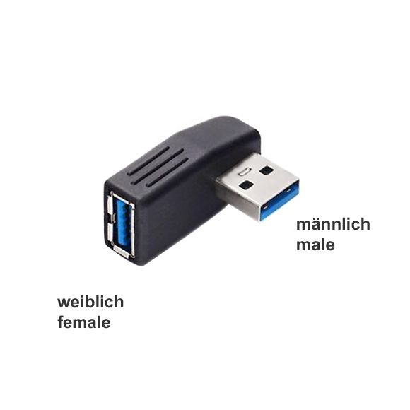 USB adapter A 90° RIGHT angled (for USB 3.0, 2.0 & 1.1)
