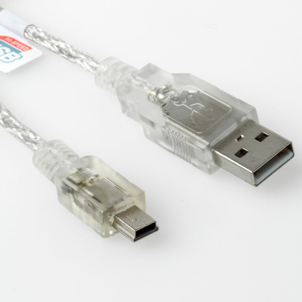 USB cable with mini B plug (5-pin), 3m, e.g. for Sony, Casio, Canon, HP, Panasonic, Konica, Yakumo od. Olympus, color: silver translucent