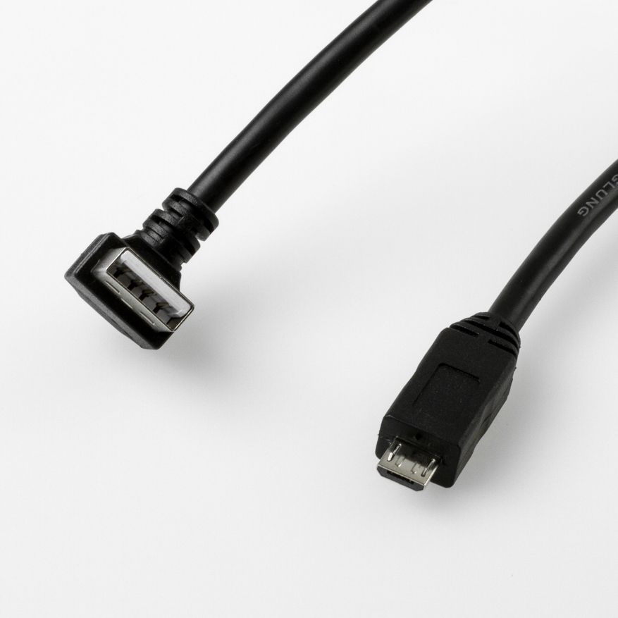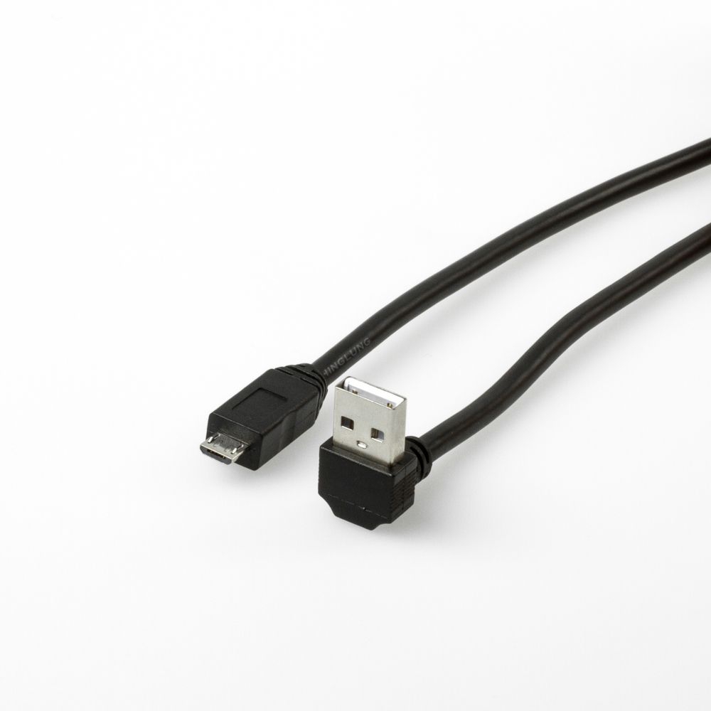 Micro USB cable with angled plug A, 1.5m, PREMIUM quality: double shielded, AWG28/1P AWG24/2C, USB 2.0, USB-A 90° angled to Micro-B straight, black