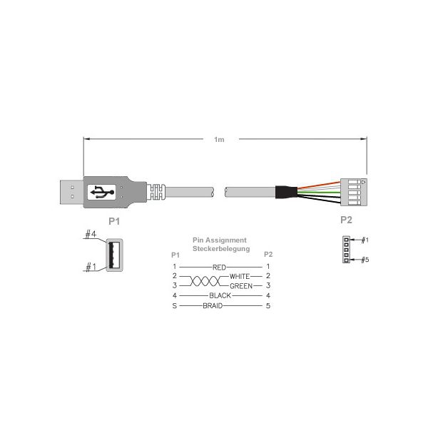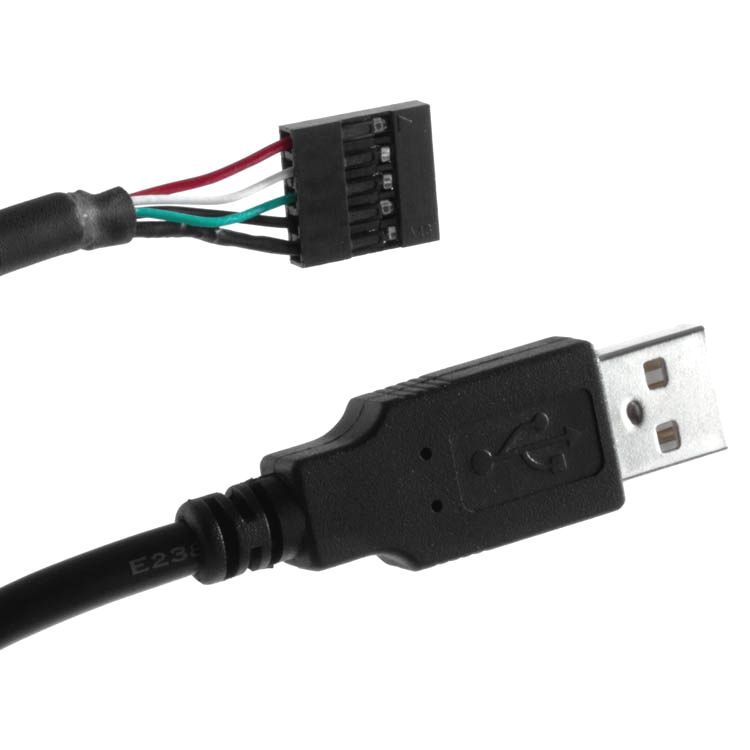 Special USB cable: USB plug A male to 5 pin board connector (grid 2.54mm), 1m, compatible USB 2.0, black