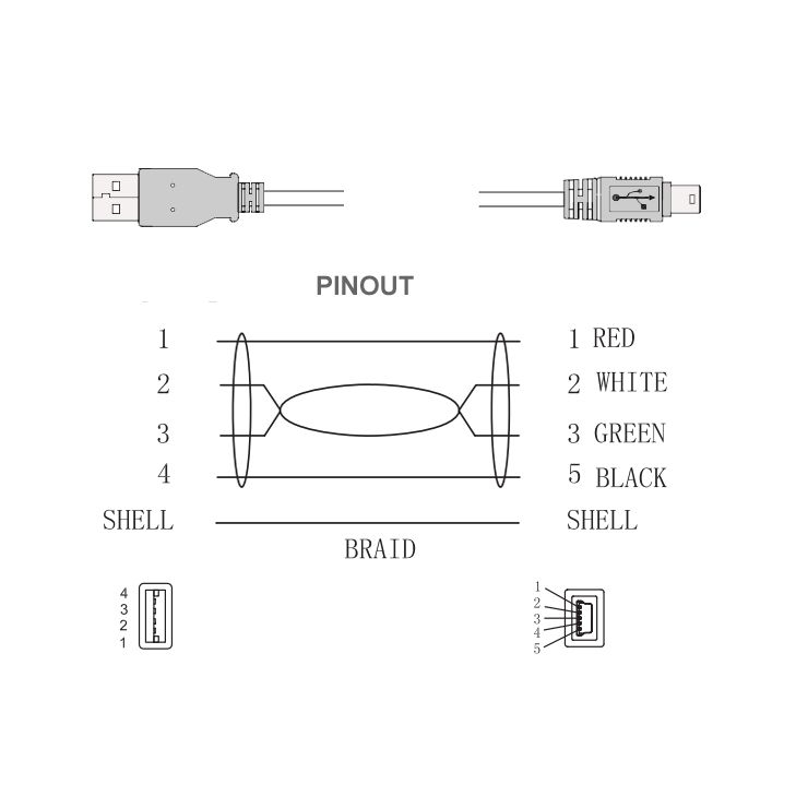 White Mini B USB cable, 50cm, USB A male to USB mini B male (5 pins), double shielded, Hi Speed USB 2.0 compatible
