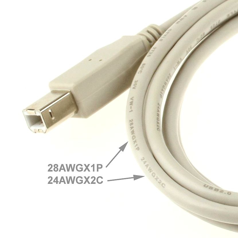 USB cable AB AWG28-1P AWG24-2C certified 5m