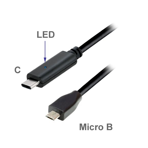 USB cable Type-C™ male with LED to USB 2.0 Micro B male 1m, black