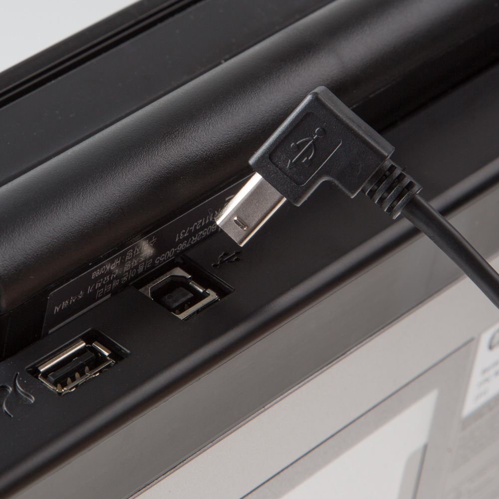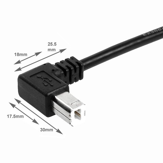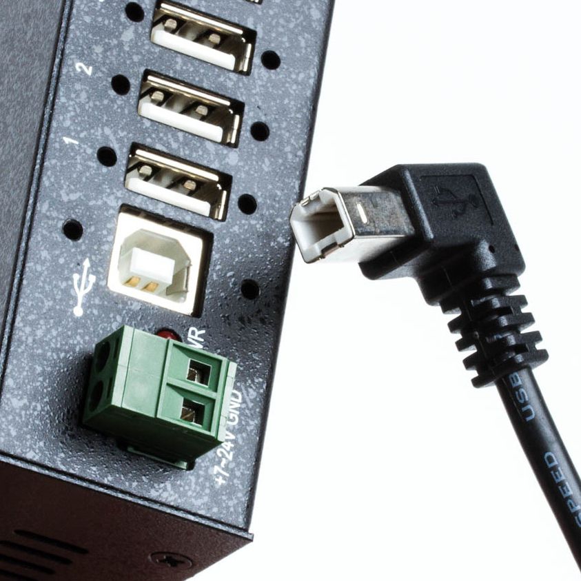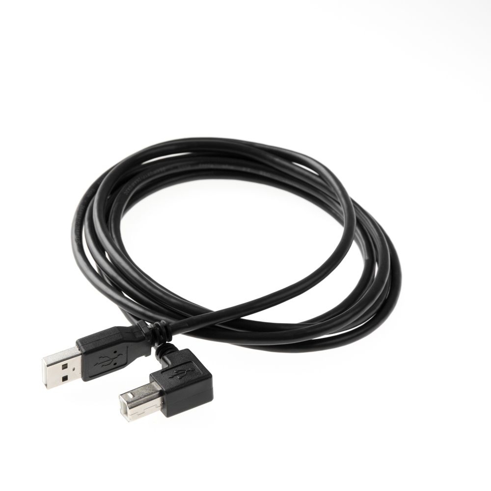 Angled USB cable, B plug angled (down) to A plug straight, 2m, for USB 1.1 and USB 2.0, high quality, colour: black, e.g. for Siemens Optiset, Optipoint TAPI/CTI Link, Octophon F20 F30 F40