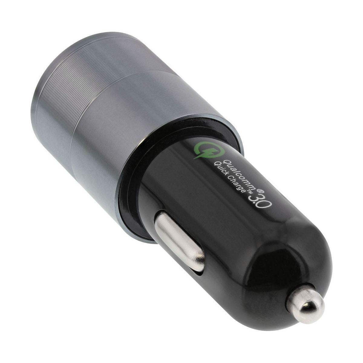 USB car charger power adapter, Quick Charge 3.0, 12/24VDC - 5V DC/3A, ports USB-A + USB Type-C, black