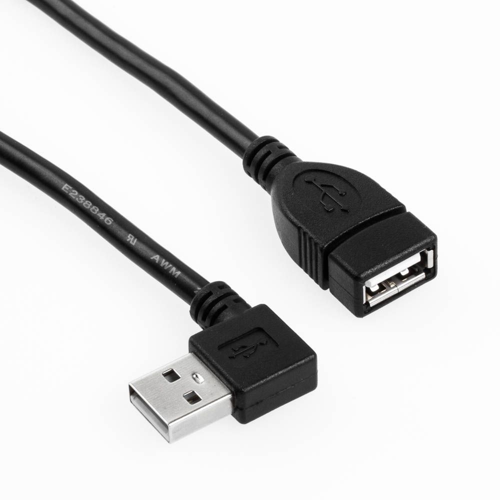 Angled USB extension cable, 3m, plug A angled 90° RIGHT to connector A female, colour: black