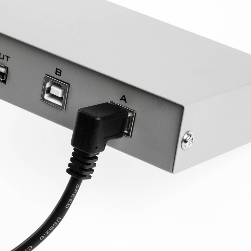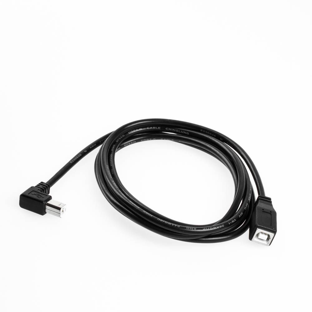 Angled USB extension cable BB, 2m, USB B plug male angled DOWN to USB B female straight, compatible USB 2.0, 480 Mbps, 28AWG/1P + 24AWG/2C, black