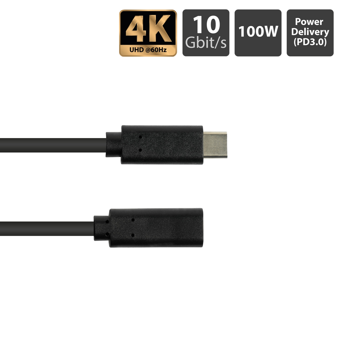 USB extension cable Type-C™ male-female, max. 10 Gbps, USB 3.2 Gen.2, max. 100 Watt, 50cm