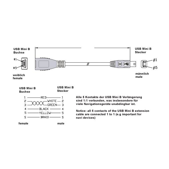 - USB Mini B male (5-pin) to USB Mini B female (5-pin)