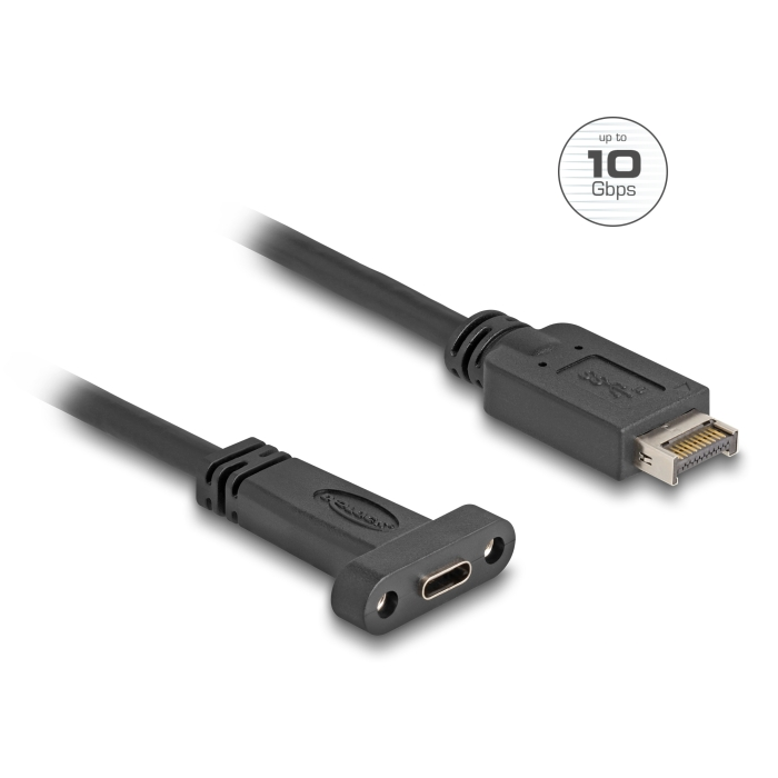 USB panel mount cable Type-E Key A 20 pin male to USB Type-C™ female, 10Gbps, 50cm