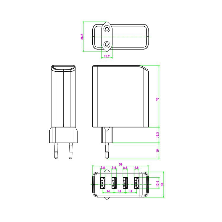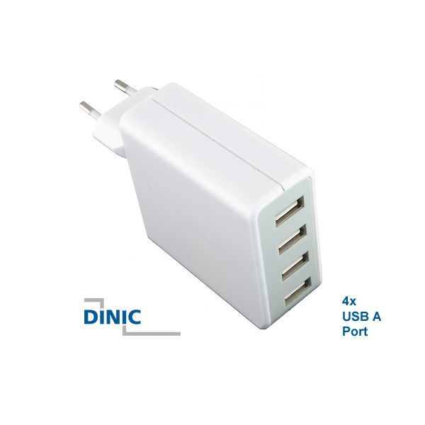 USB power supply with 4x USB A port female, output: 5V max. 4800mA, input: 100-240V / 50-60Hz, colour: white