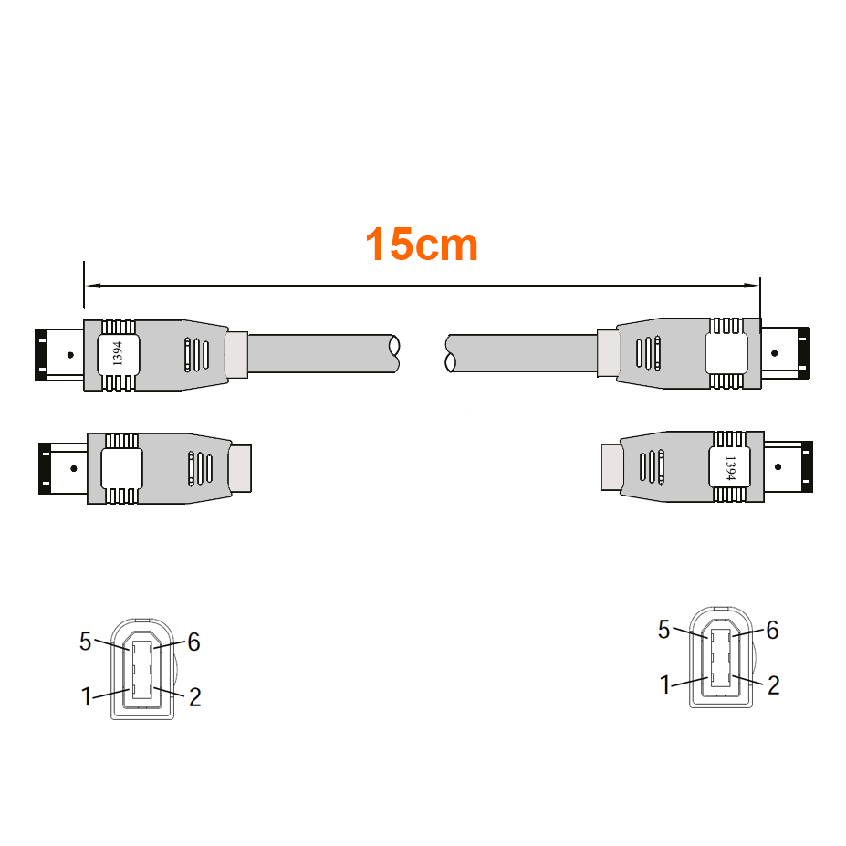 Very short Firewire 400 cable 6 pin to 6 pin 15cm IEEE1394a black