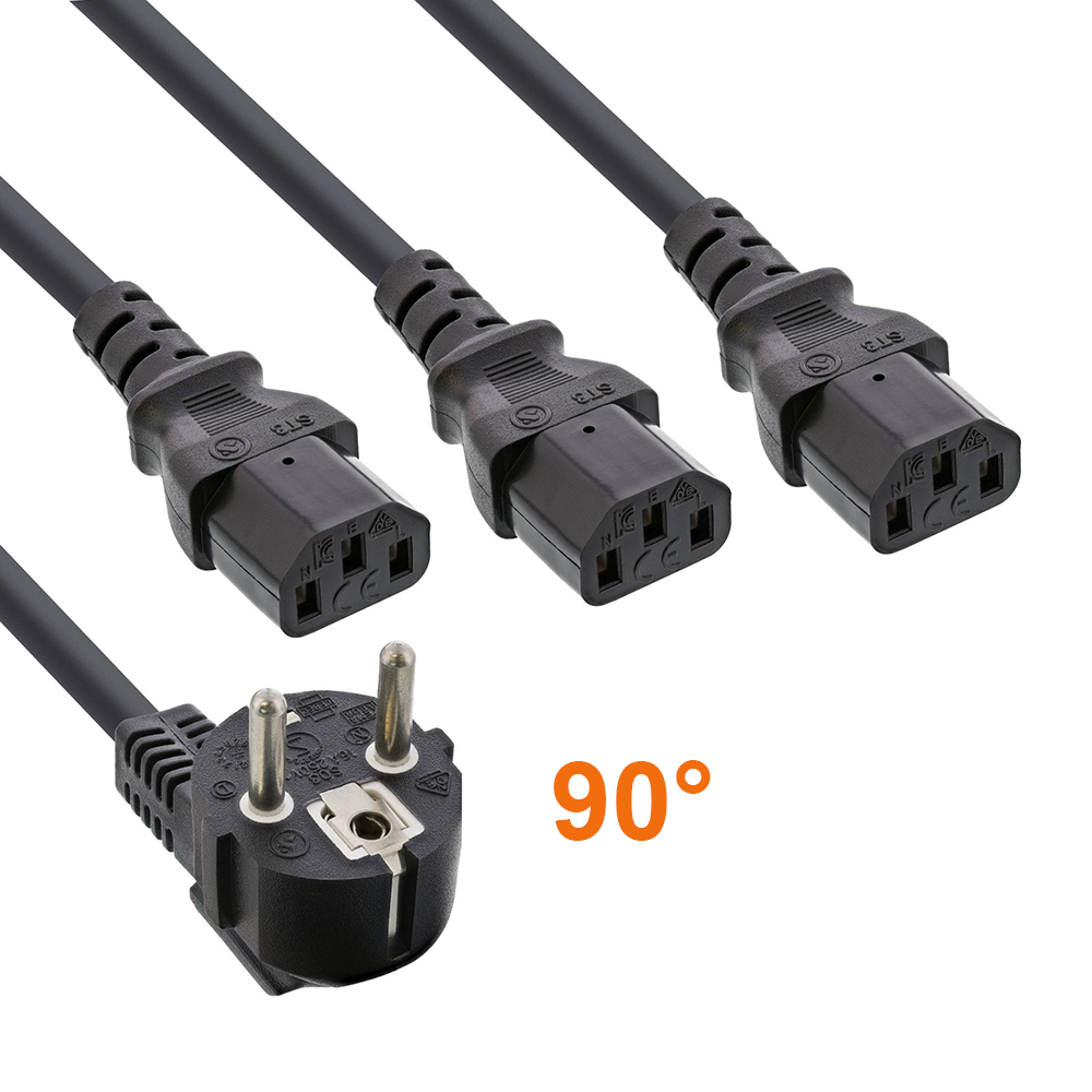 Y power cord for 3 devices, total length 180cm (60cm + 3x 120cm), for continental Europe