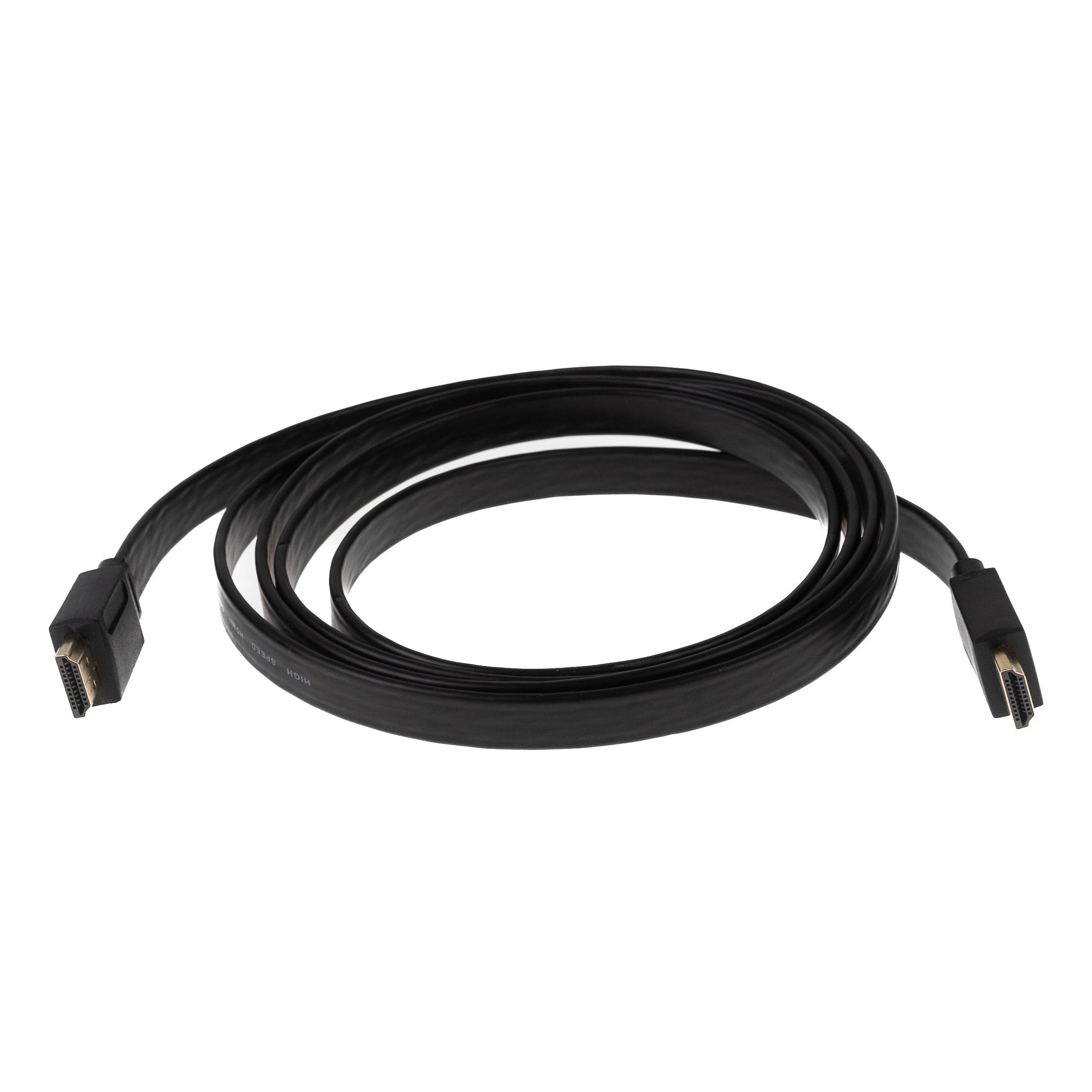 HDMI flat cable for space-saving installation, 4K 2K video support, 19-pin HDMI plug (A) on both sides, transmission of video and audio signals (purely digital), with Ethernet, black, 1m