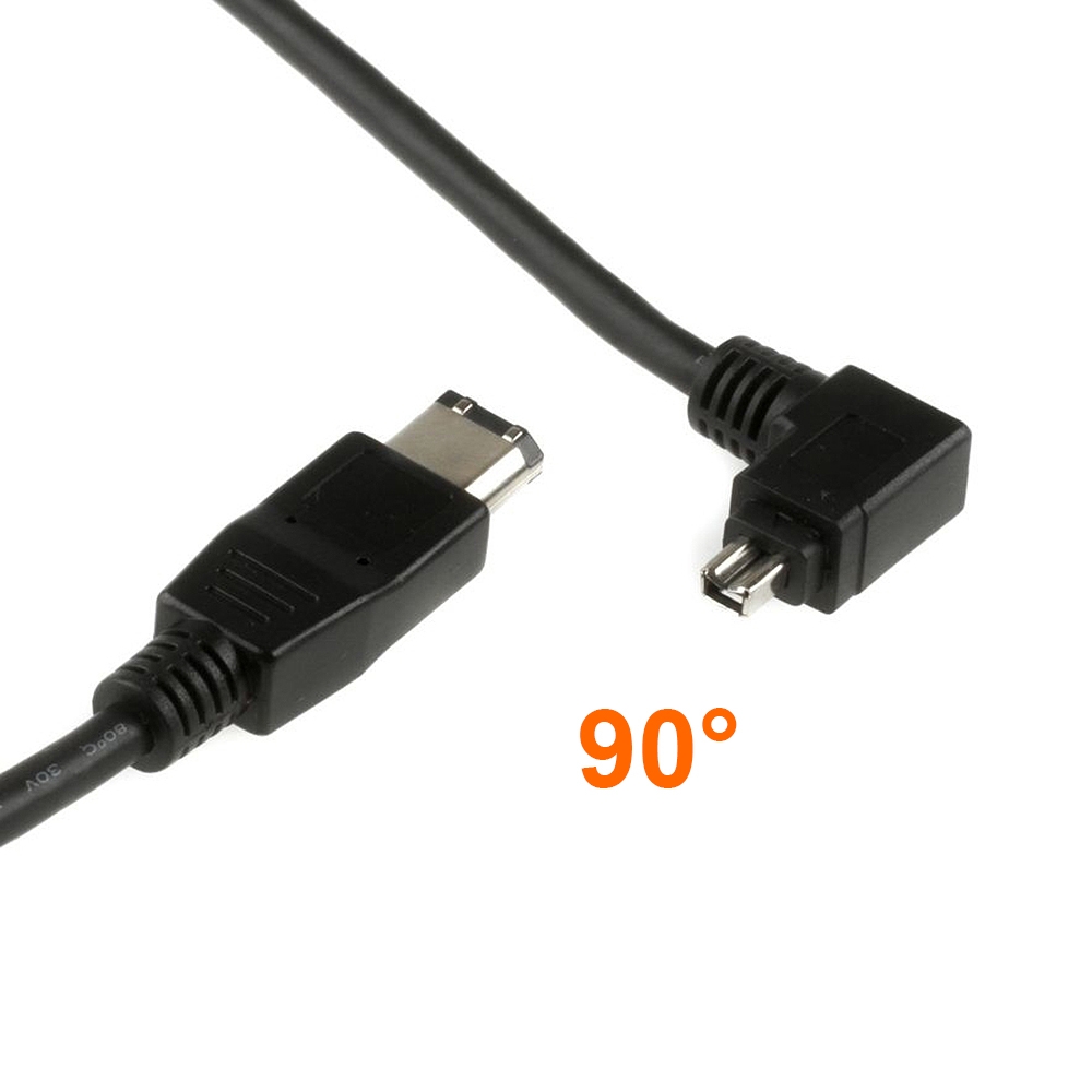 This firewire cable, which was specially manufactured for us, has a 4 pin and a 6 pin plug. The special feature is the 4 pin plug angled to the left. This makes the cable particularly suitable for use in confined spaces at the 4 pin Firewire port. In addition, the angled plug can be much better fixed with adhesive tape to prevent it from slipping out than a straight plug.