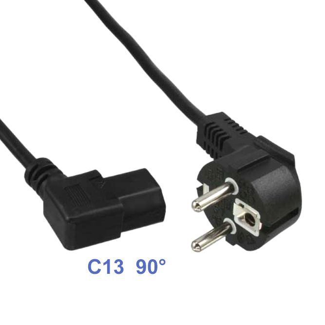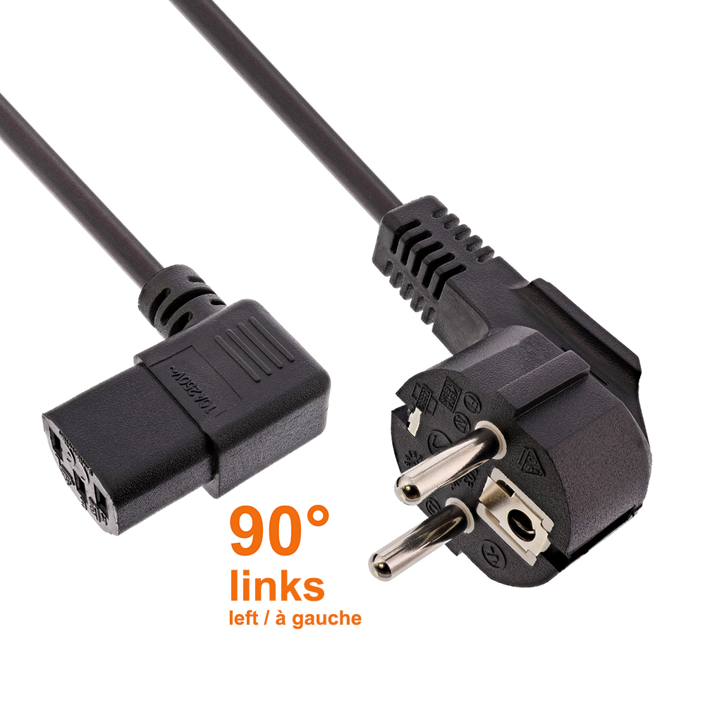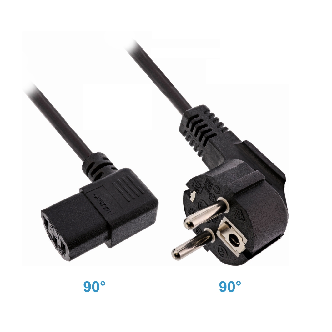 Power cord for Europe (e.g. Germany and France), 5m, VDE, 3G x 1mm², both plugs 90° angled (LEFT), IEC 60320, w/C13, black