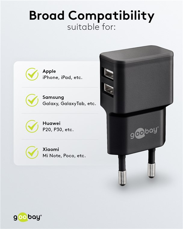 USB power supply with 2x USB A port female 5V 2400mA black